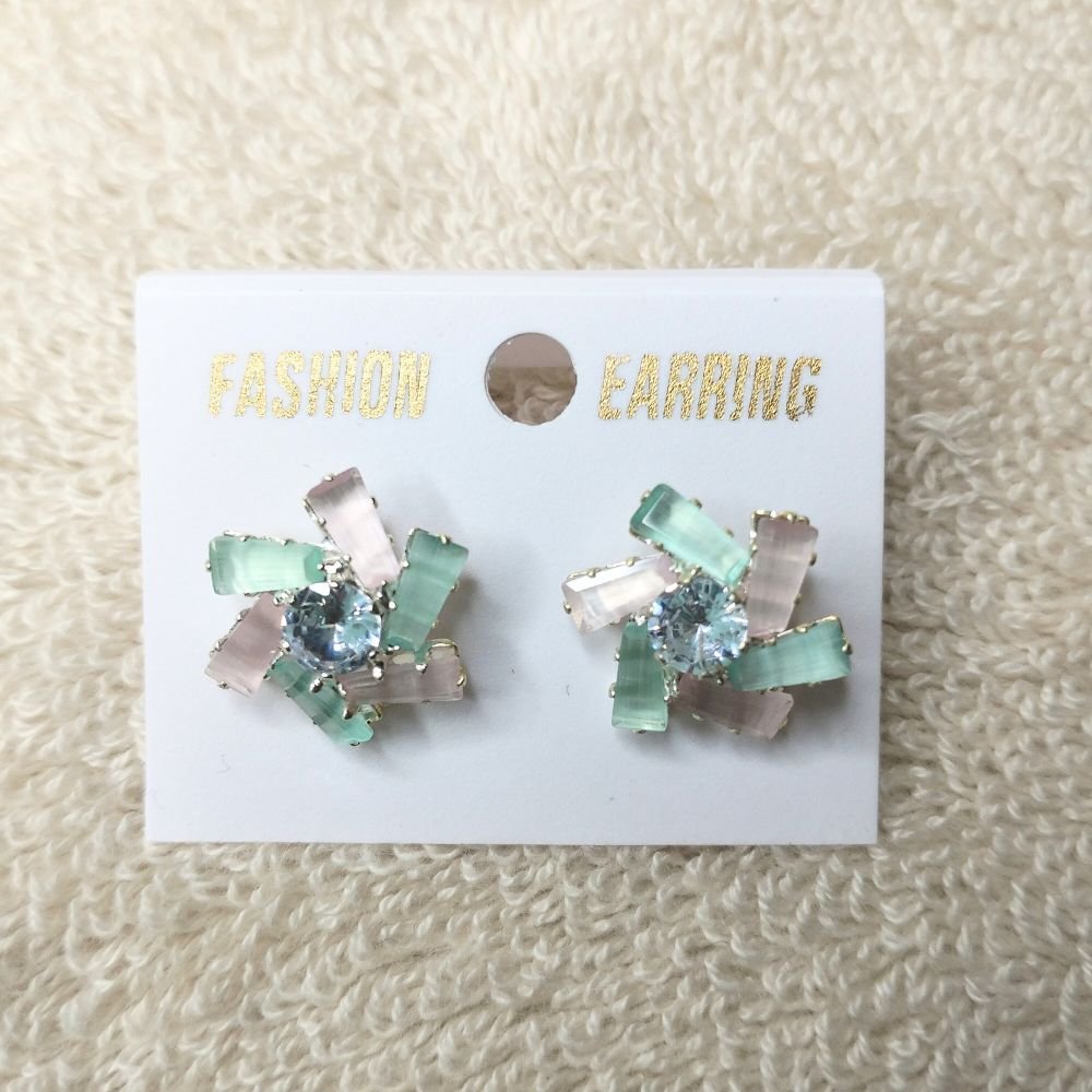 Green Stone with Diamond Stud Korean Earrings